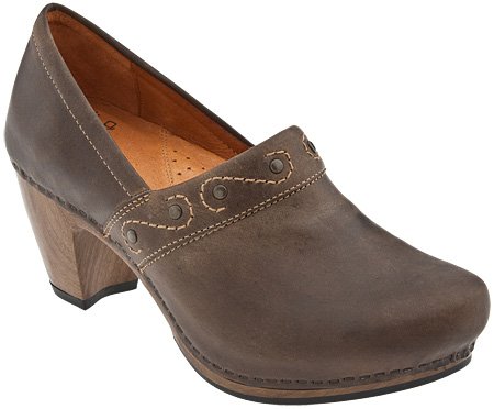Let the shapely Dansko Riki shoe give your everyday style a lift. The chic Dansko Rio collection is characterized by contemporary, clog-inspired style atop a flattering, stable heel, and this women's closed-back clog is no exception. The leather-covered footbed and midsole offer layers of cushy EVA support for all-day comfort. The Dansko Riki mid-heel clog has a synthetic heel and platform for lightweight lift and a synthetic sole for dependable traction.